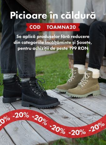 Picioare în căldură 🧦 La o achiziție de peste 199 Lei, 20% reducere la șosete și încălțăminte nereduse🔖 Cod: TOAMNA20