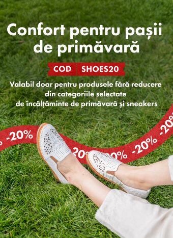 👟 -20 % la încălțămintea de primăvară și de vară și la teniși 🔖 Cod: SHOES20 | Nu se aplică produselor aflate în promoție