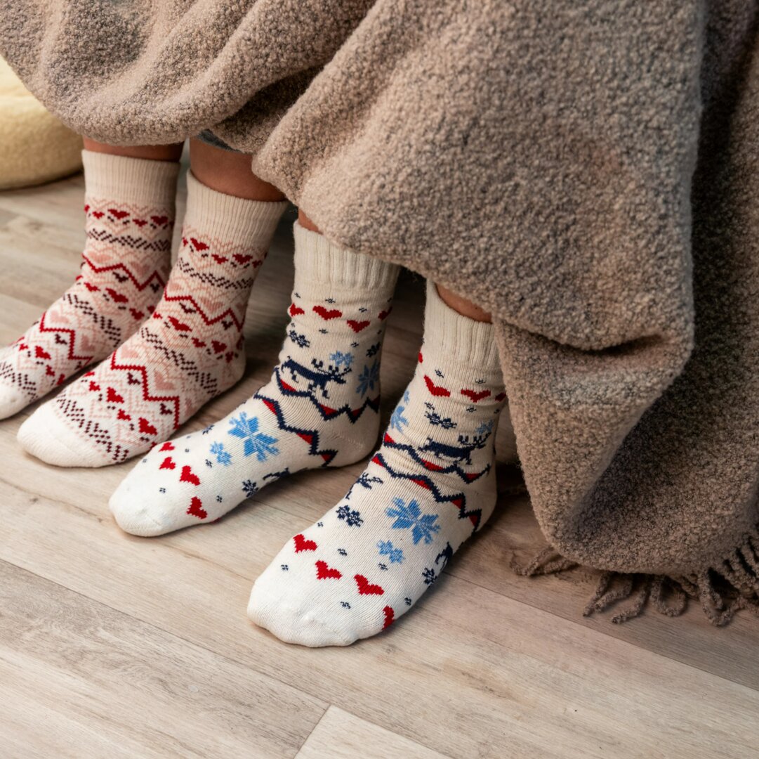 Șosetele calde de calitate cu un motiv pot fi purtate pentru plimbări, muncă sau relaxare în fața televizorului. Dacă doriți să faceți o bucurie prietenilor îndrăgostiți prin aceste șosete îi vor uimi cu siguranță. Cumpărând produse fabricate din lână de oaie , salvați planeta și faceți ceva bun pentru dumneavoastră în același timp.