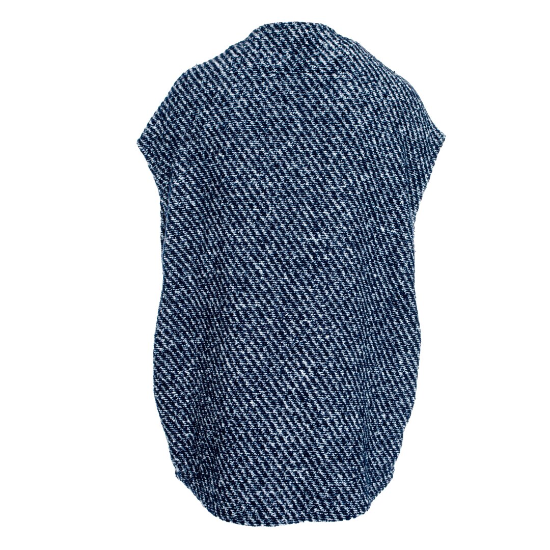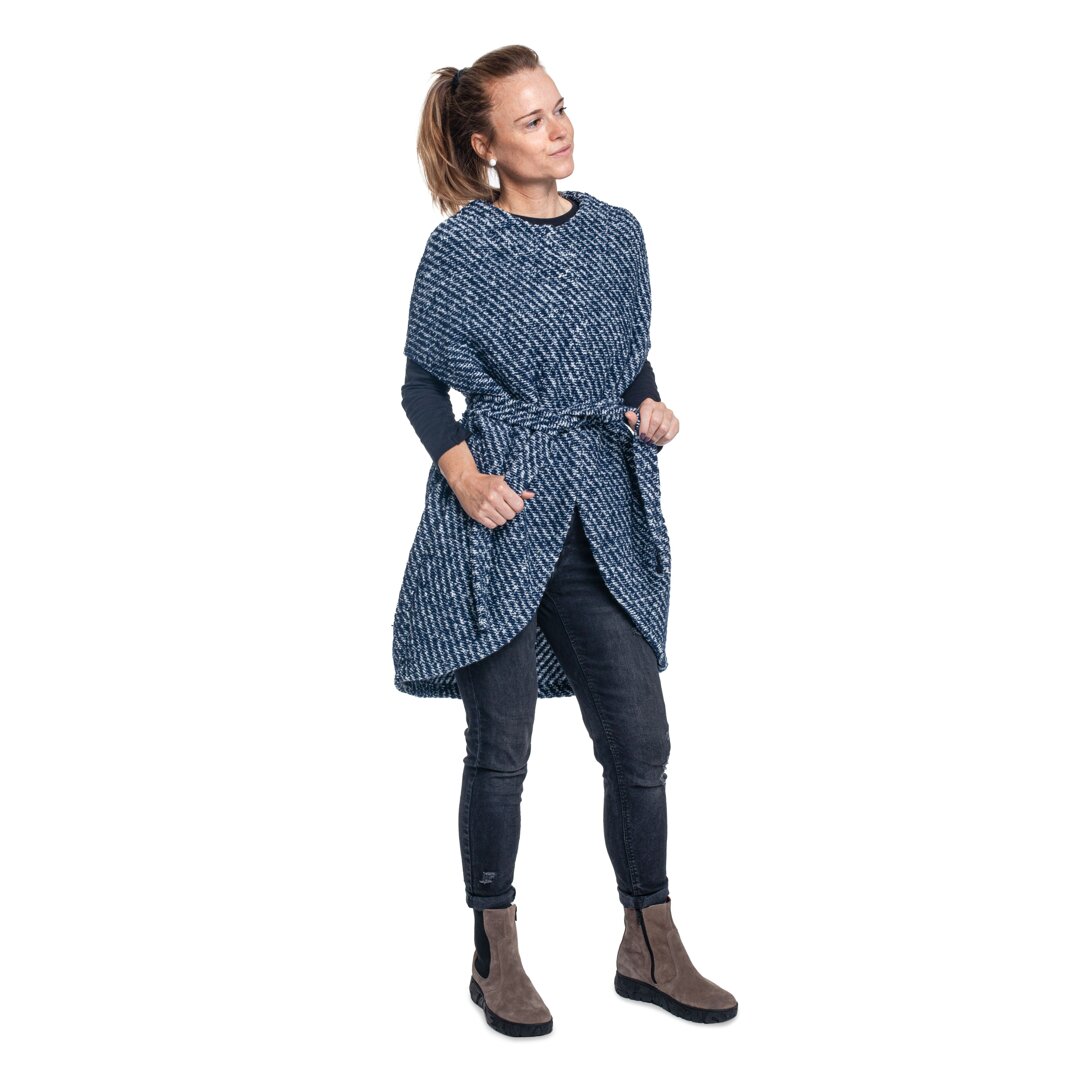 Partea din față a vestei este complet tăiată, cu prindere cu capse. Vesta poate fi, așadar, prinsă cu capse sau purtată descheiată, cu sau fără curea. Croiala vestei este mai lungă la spate și are două buzunare pe laterale. Lâna de oaie este un material natural, regenerabil, cu proprietăți funcționale pe care le veți aprecia în fiecare zi.
